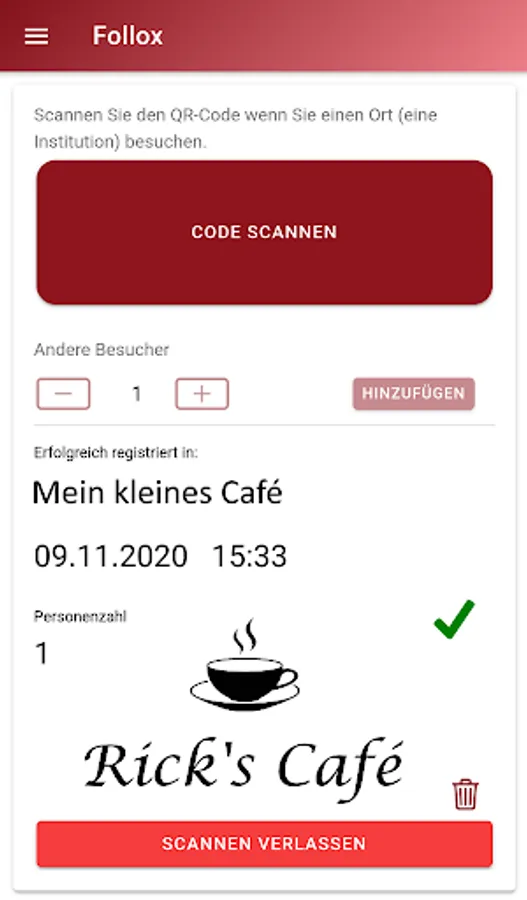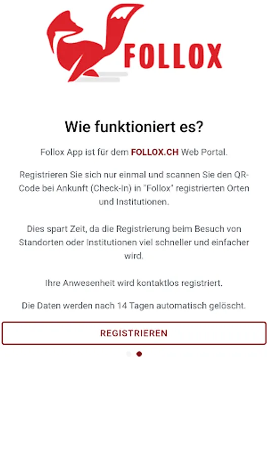 Register only once and scan the QR code upon arrival (check-in) in "Follox" registered locations and institutions.