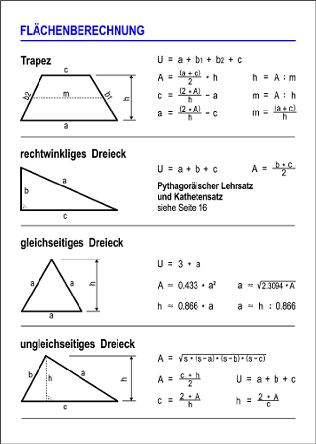 There you will find a lot about units of measure, areas, volumes, important theorems and many different construction tables and lists about building in civil engineering and traffic route construction. The APP edition for Germany and Austria is partly based on the formulas + tables edition Switzerland.