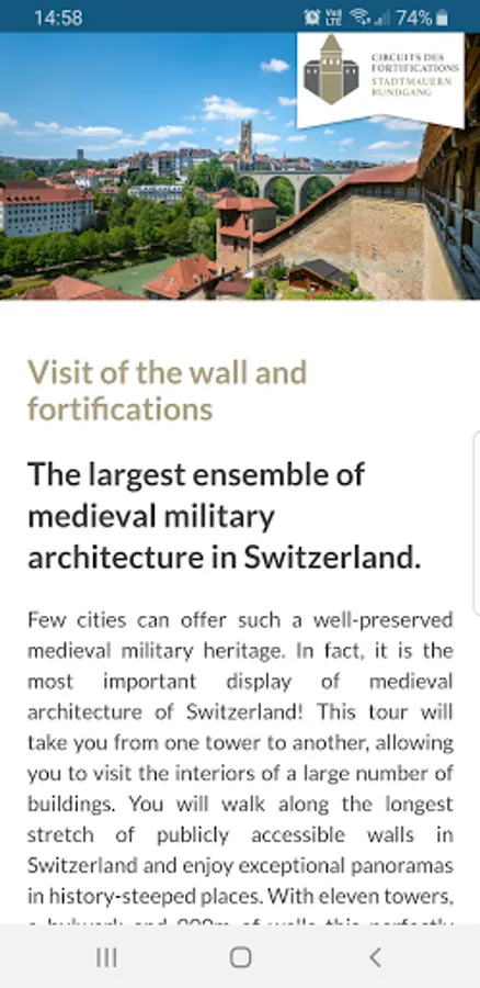The APP "Fribourg Tourisme AR" is used for tour projects set up by Fribourg Tourism or other partners, and for which augmented reality content is available. Three tours are available on the APP: