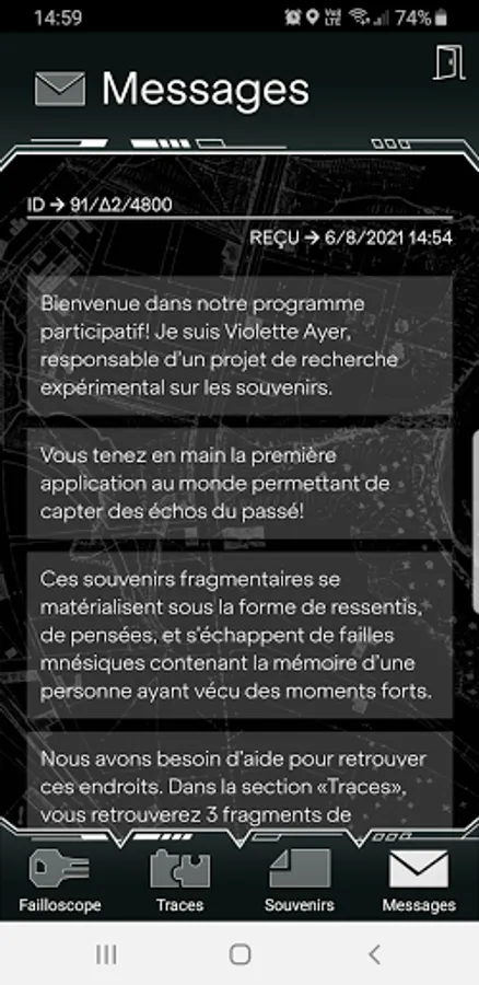 "What is this? I'm picking up something on my detector! It looks like memory threads... in suspension! They are everywhere on Pérolles. The images look old, they must be memories from the beginning of the 20th century. Discover who these memories belong to and, above all, why they are emerging now."