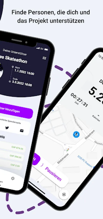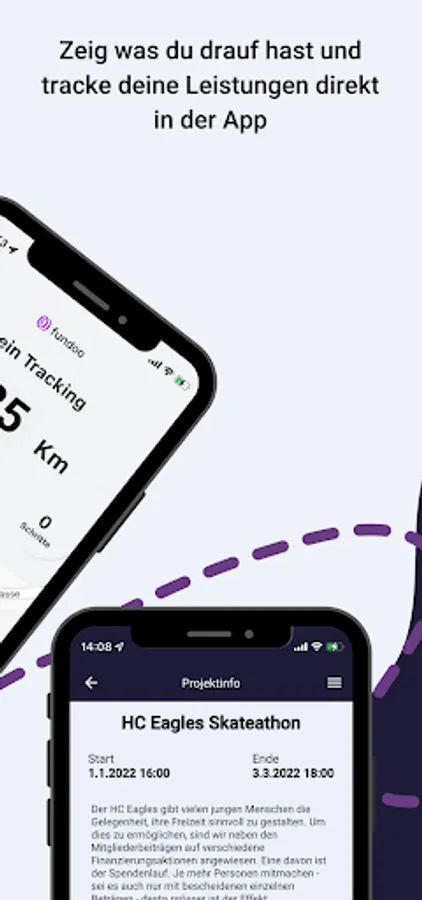 As soon as the project has started, you can use the fundoo app to track your performance and actively influence your donation result.