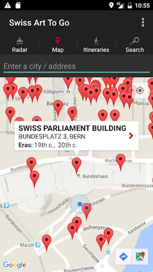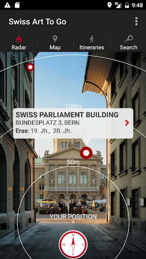 This means Swiss Art To Go can give you reliable information, gathered and checked by over 300 renowned Swiss art historians. But Swiss Art To Go offers much, much more. It is also an audio guide which knows exactly where you are and which can, if you so choose, inspire you with suggestions for visits which match your interests and your taste in architecture.