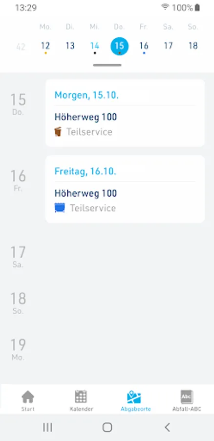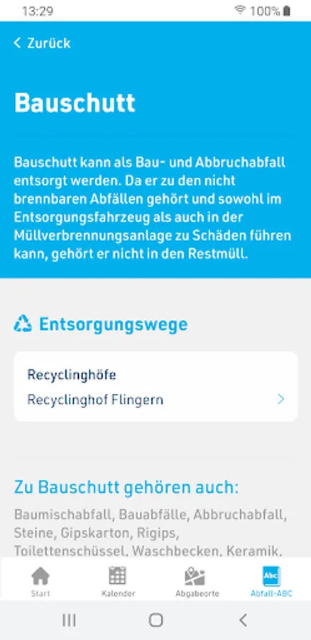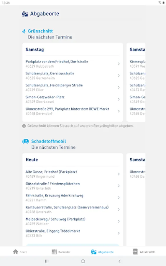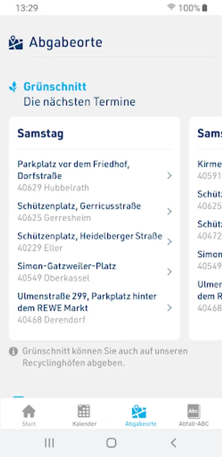 With the bulky waste function, binding disposal dates can be booked quickly and easily online and then displayed. There is also information about the recycling yards and the current dates for the disposal of pollutants and green waste are displayed.