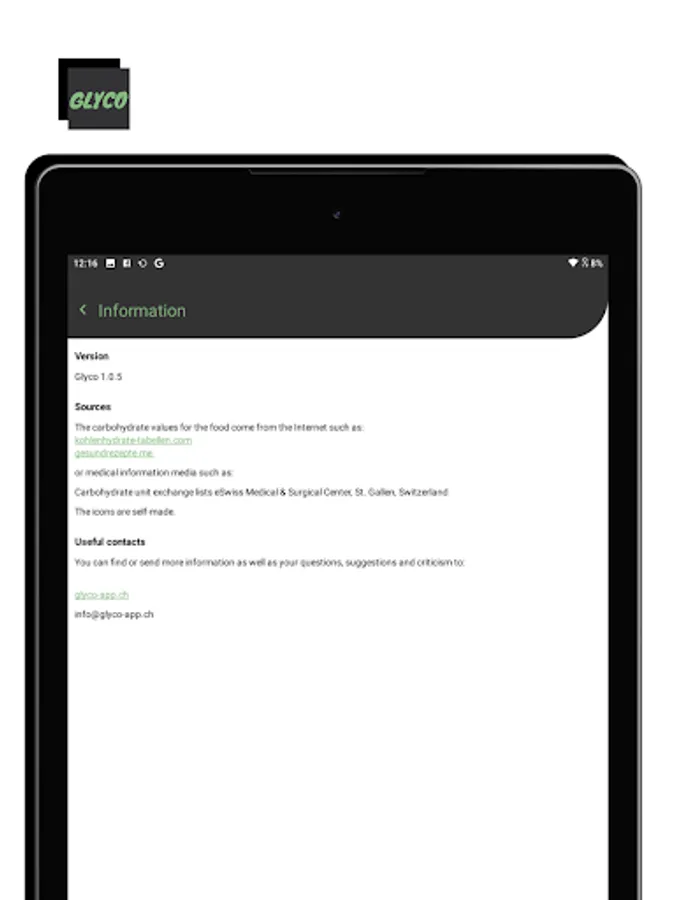 Glyco CH - Calculate CarbonHydrate and Insulin units