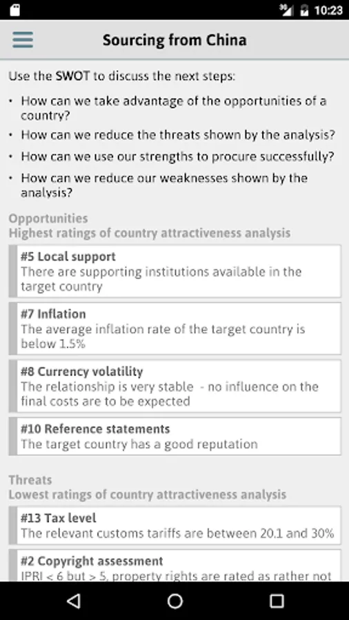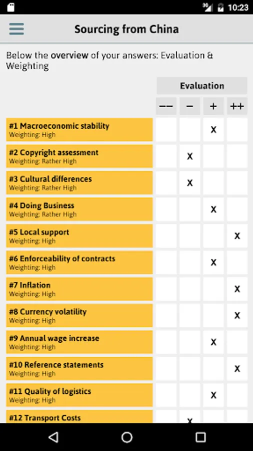 Fit2Procure™ supports companies to assess the attractiveness of a country with respect to sourcing and the companies’ capabilities with regards to international sourcing. It further supports to make an initial high-level supplier evaluation.
