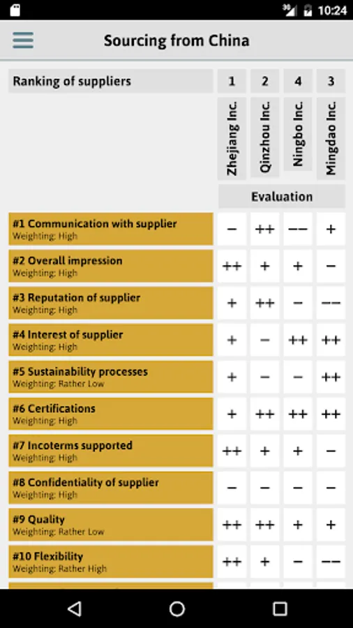 4. High-level evaluation of potential suppliers: ranking of suppliers analyzed