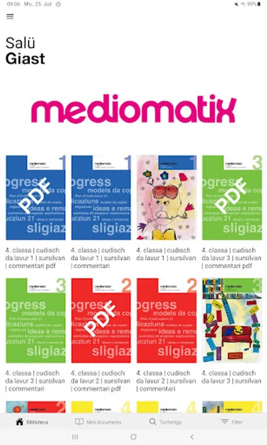 Mit der App «Mediomatix» werden durch den Kanton Graubünden neue analoge und digitale Arbeitsbücher und Lehrerkommentare für den Rätoromanischunterricht der 2. Klasse Primarstufe - 3. Klasse Sekundarstufe 1 in den Idiomen Vallader, Puter, Sursilvan und Sutsilvan zur Verfügung gestellt. Die Lehrmittel sind Lehrplan 21 kompatibel.