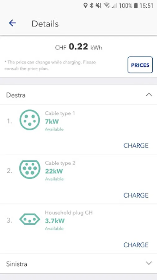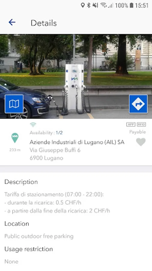 You can instantly view the proposed plug types, the real-time availability and the possible payment systems.