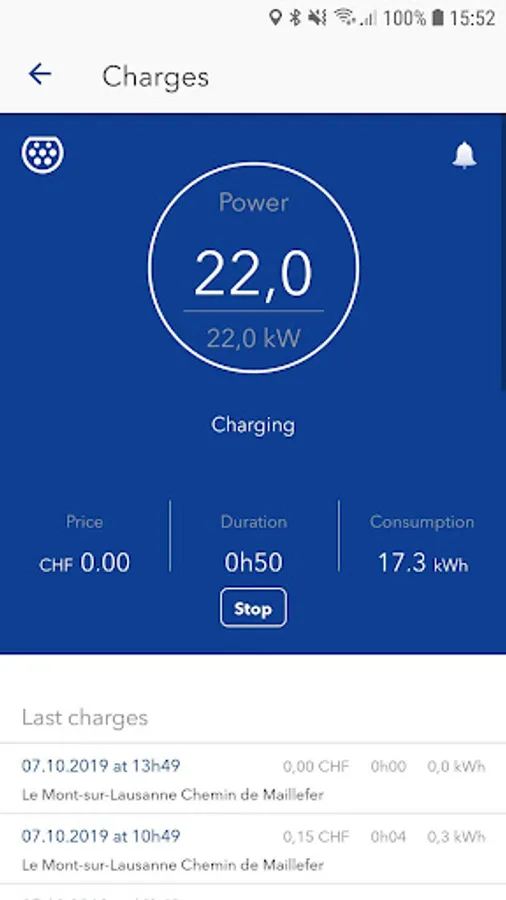 The app could act as your usual RFID card, it can start or stop your charge, and to follow its real-time progression.
