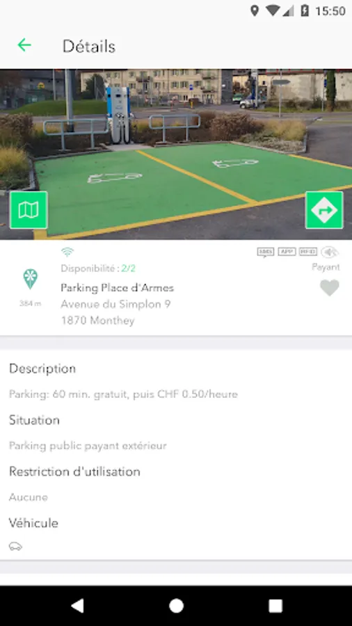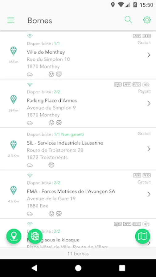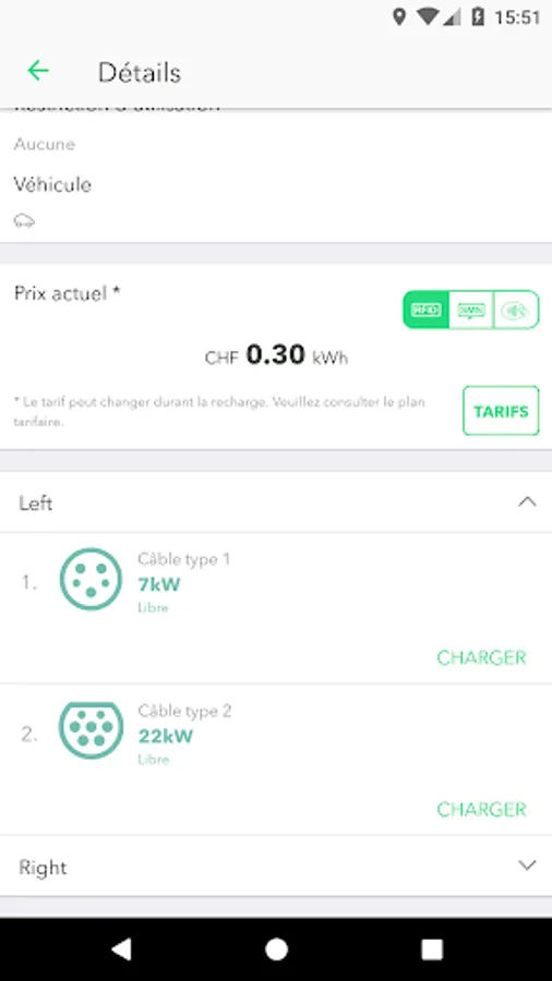 You instantly see the types of sockets offered, real-time availability and possible means of payment.