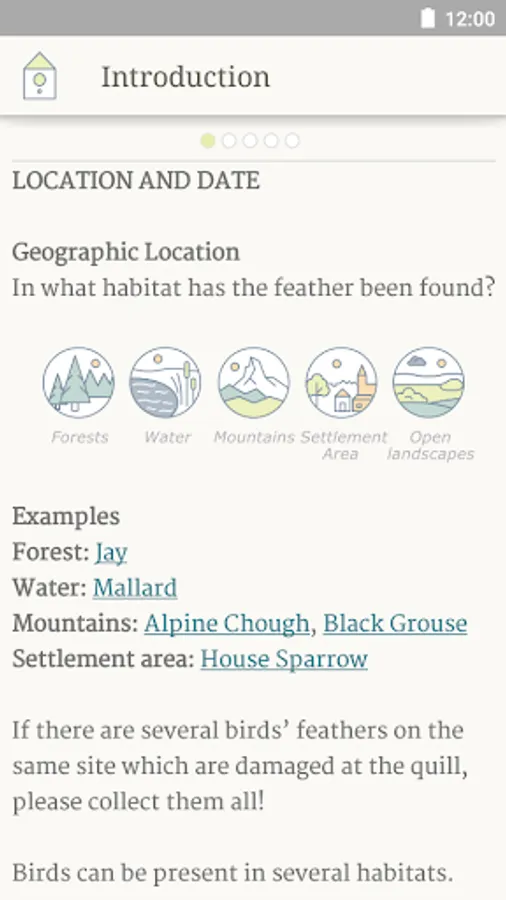 The app helps you if you are interested in lifting the secret about found feathers of different shapes and colors. Find out which feather belongs to which bird.