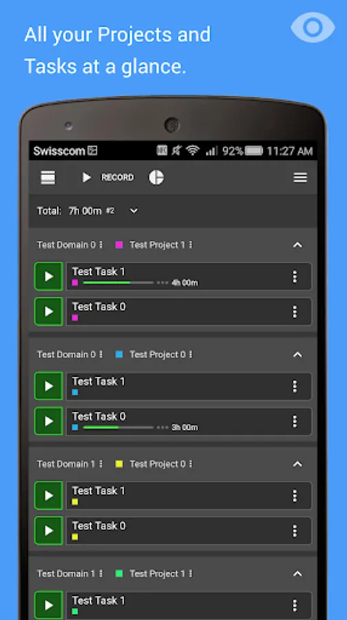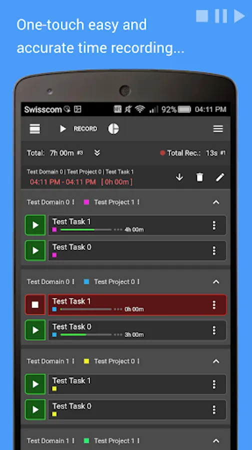 Record time with minimal effort, easily switch between projects and tasks, or access on-the-fly statistics to see your recorded times at a glance.