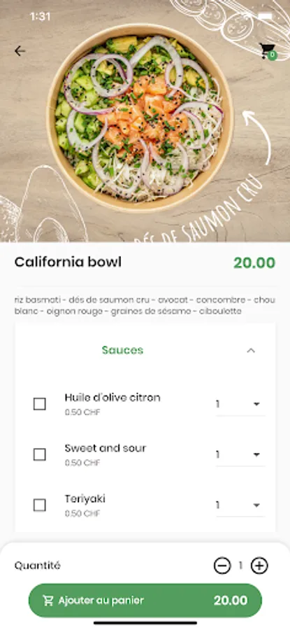 Une base de riz basmati ou de quinoa, des protéines, des crudités, des toppings et une délicieuse sauce à choix.