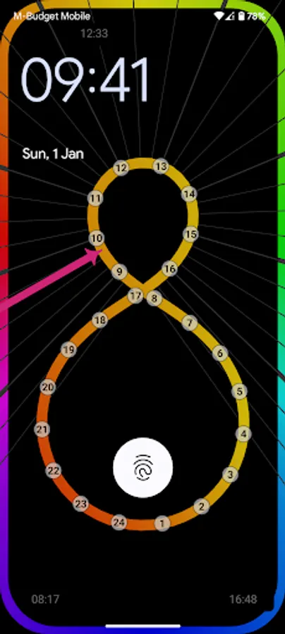 on an analogue lemniscate-shaped dial.