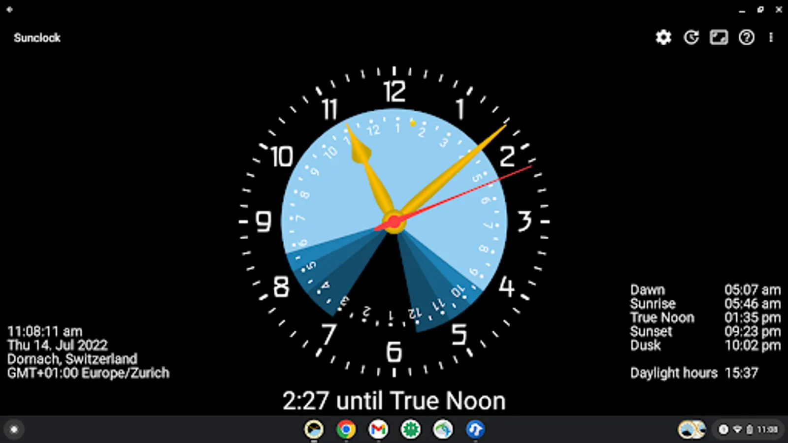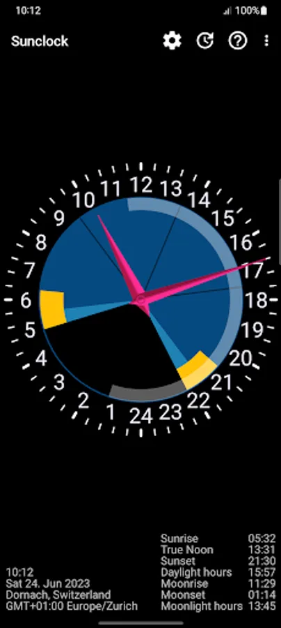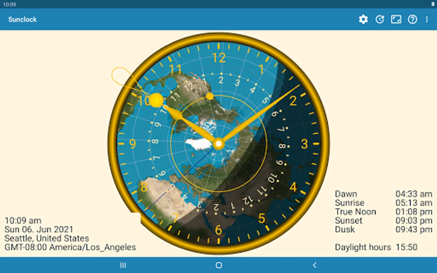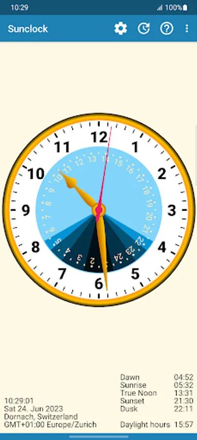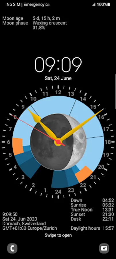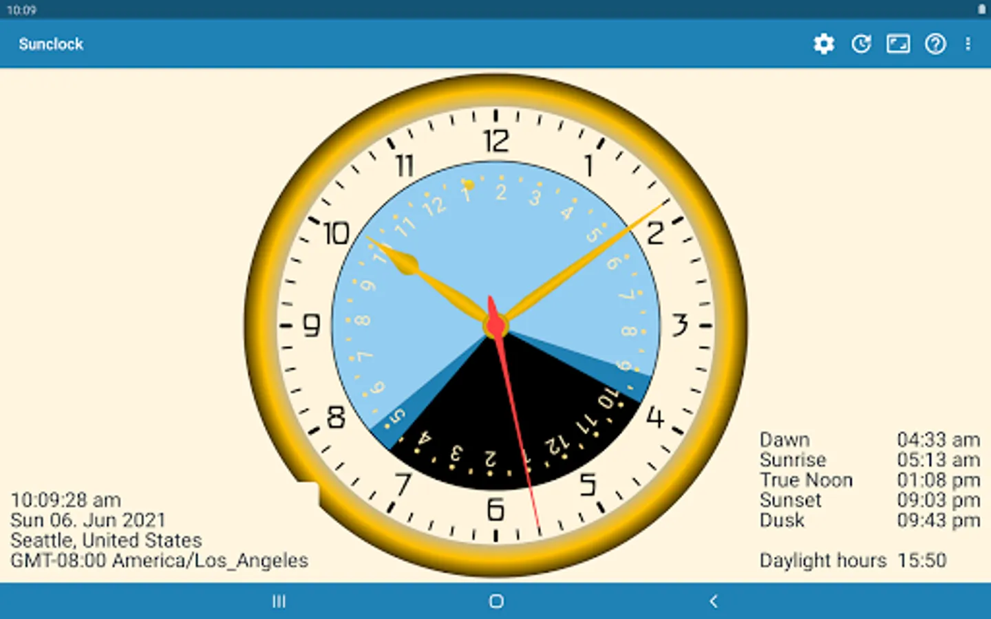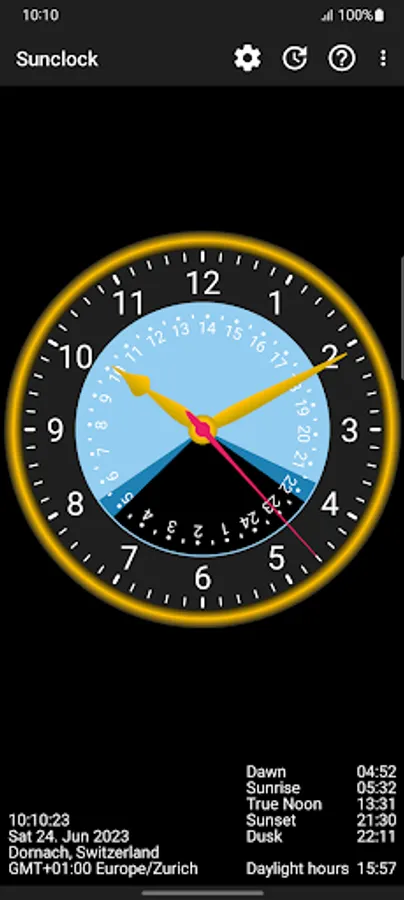 Sunclock takes you beyond standard time-keeping, transforming your device into an astronomical clock with an analog display. It not only tells the time, but also emphasizes the beauty of natural light by showing sunrise and sunset times, including the periods of twilight. You'll know the exact moments of civil, nautical and astronomical twilight, vital for photographers seeking the perfect 'golden hour' or 'blue hour' for stunning light effects.