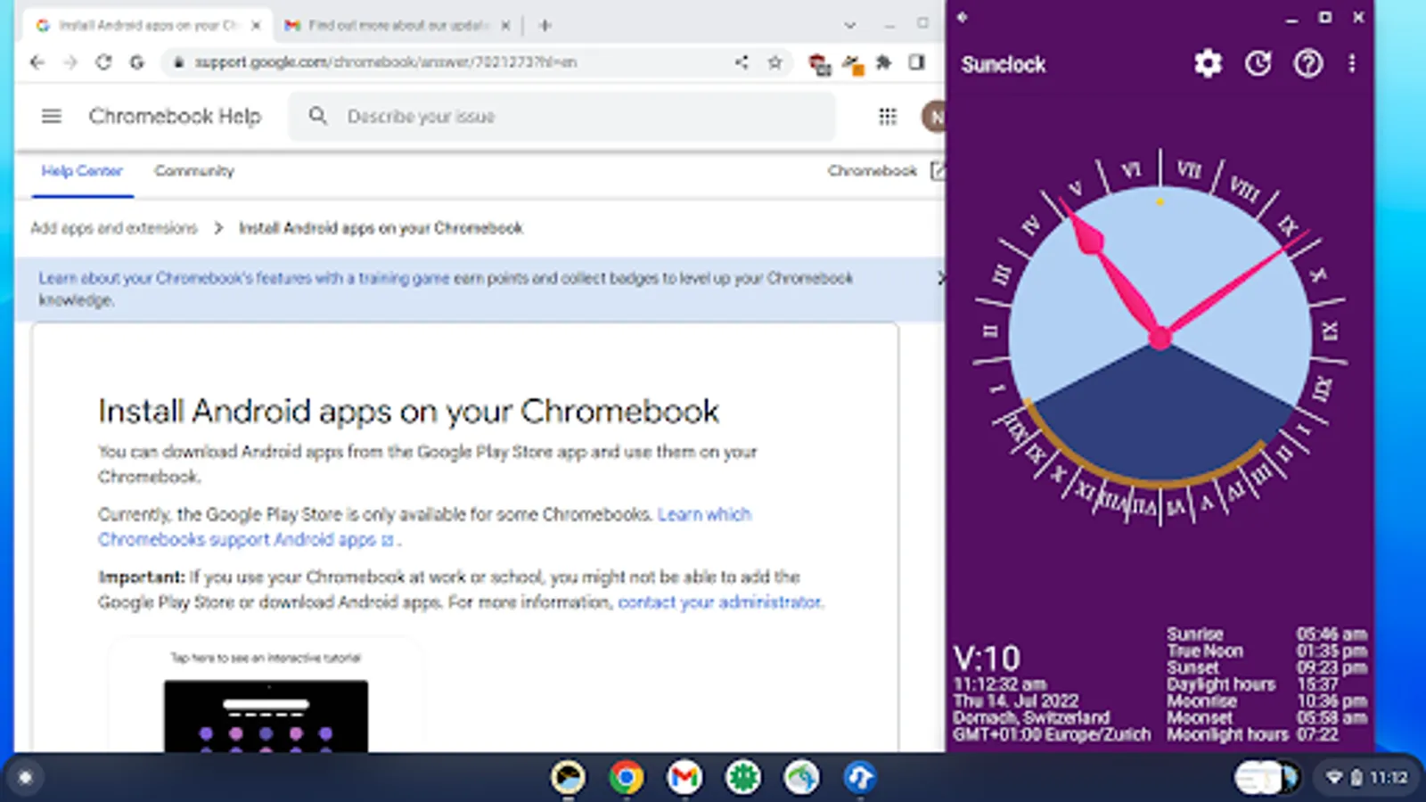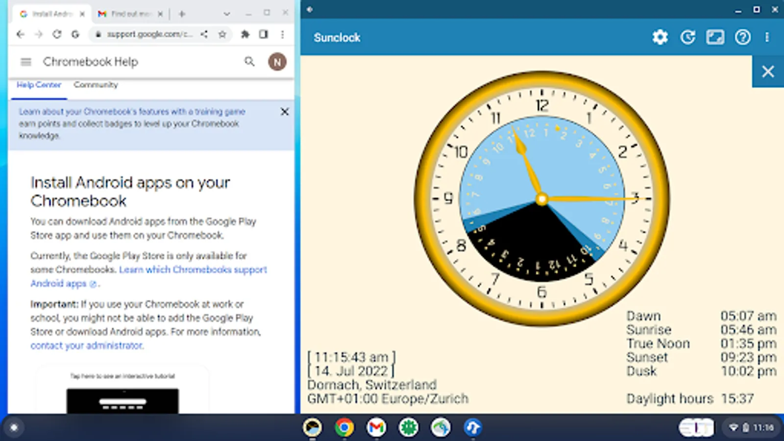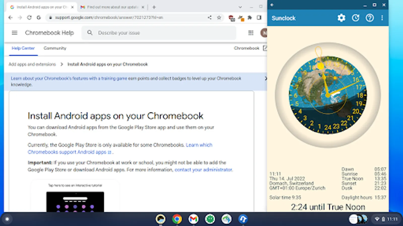 Sunclock also displays ancient time measurements where the day is divided into twelve hours from sunrise to sunset, such as