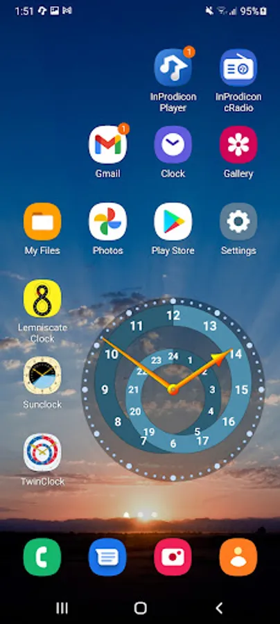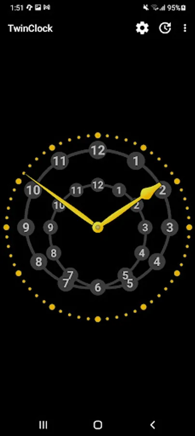 Experience this two-part daily rhythm with the TwinClock watch. It is also, quite simply, just an analogue clock. In the first screenshot, look at the analog clock at just before two. It already gives the feeling of a two, while the digital time display still remains at one (plus one minute number).