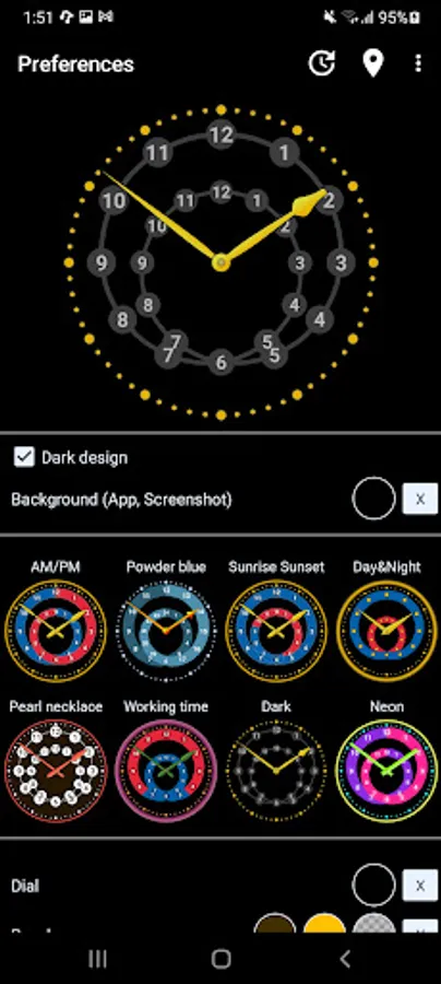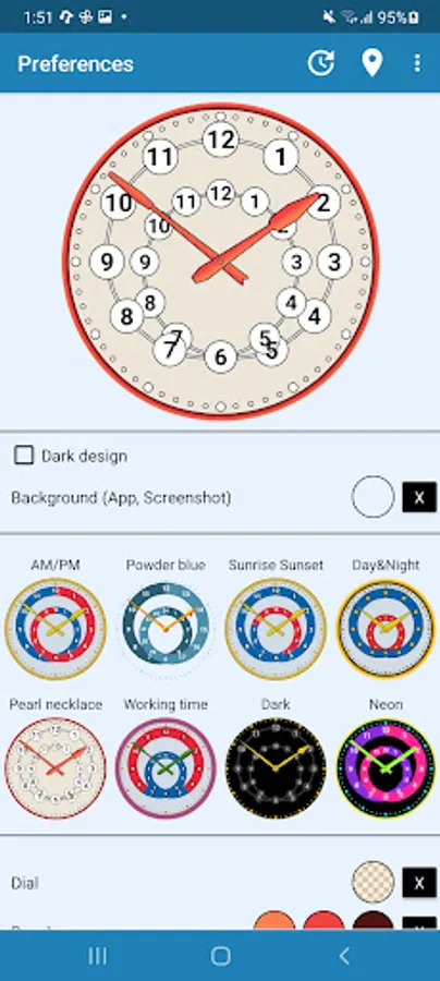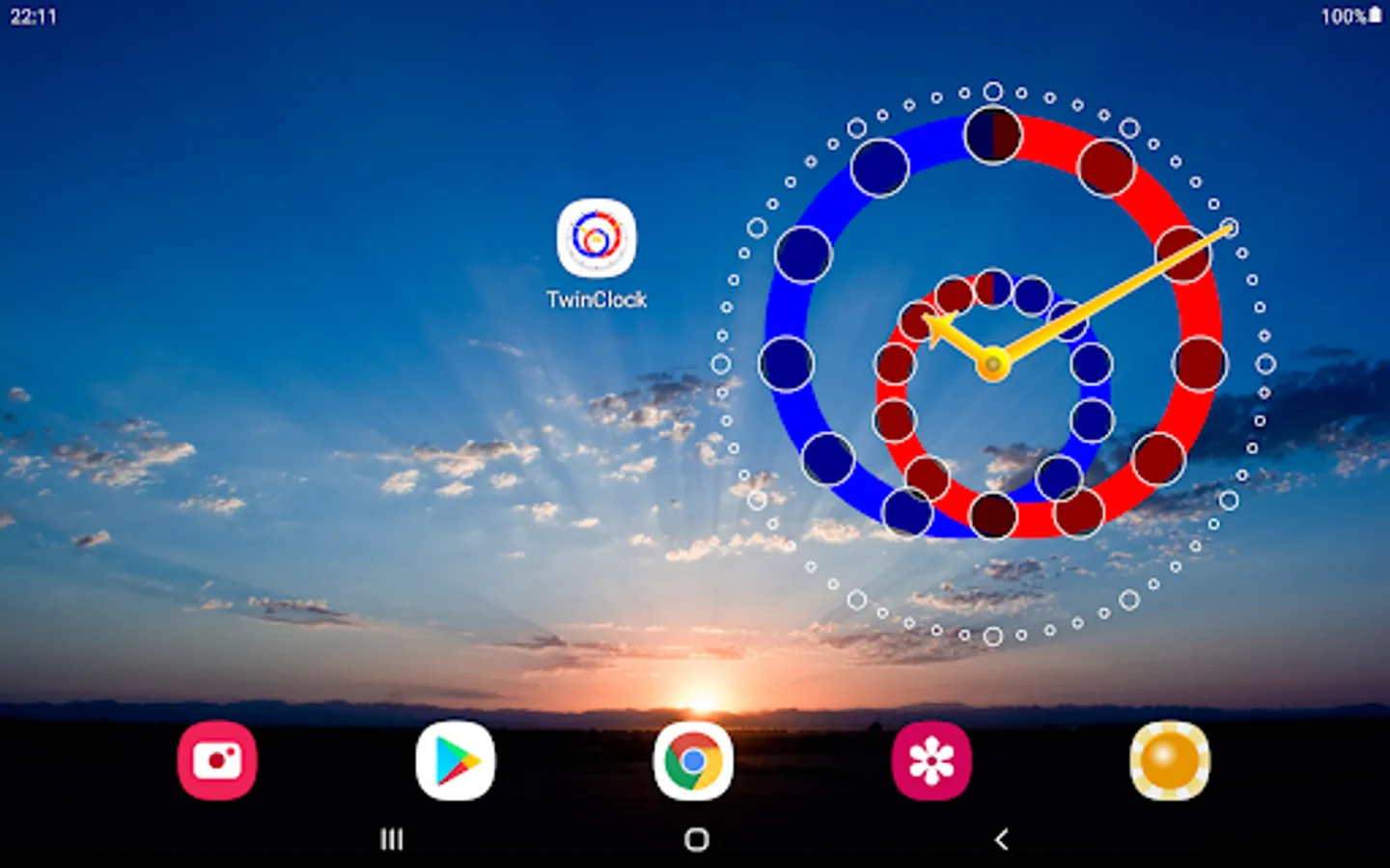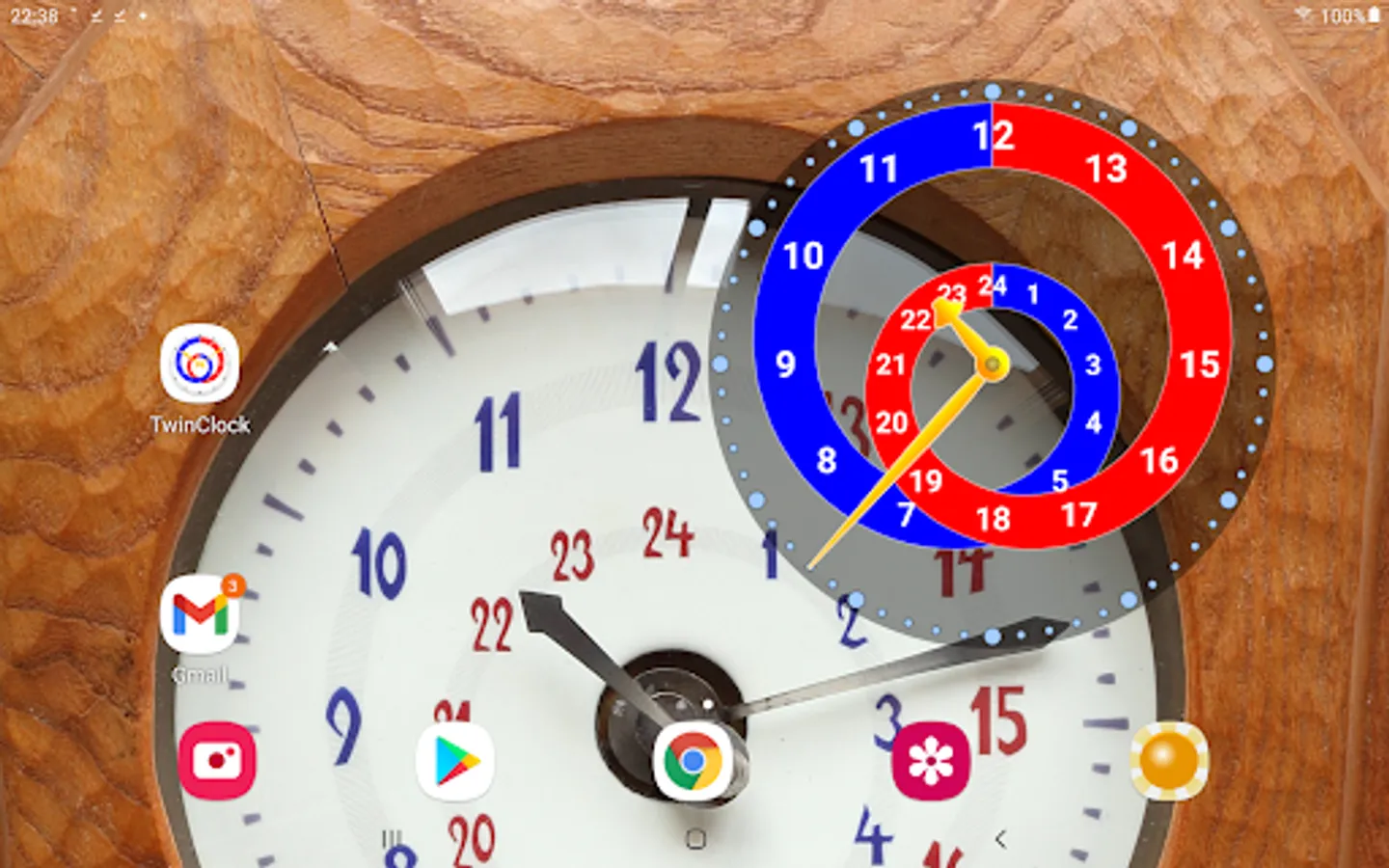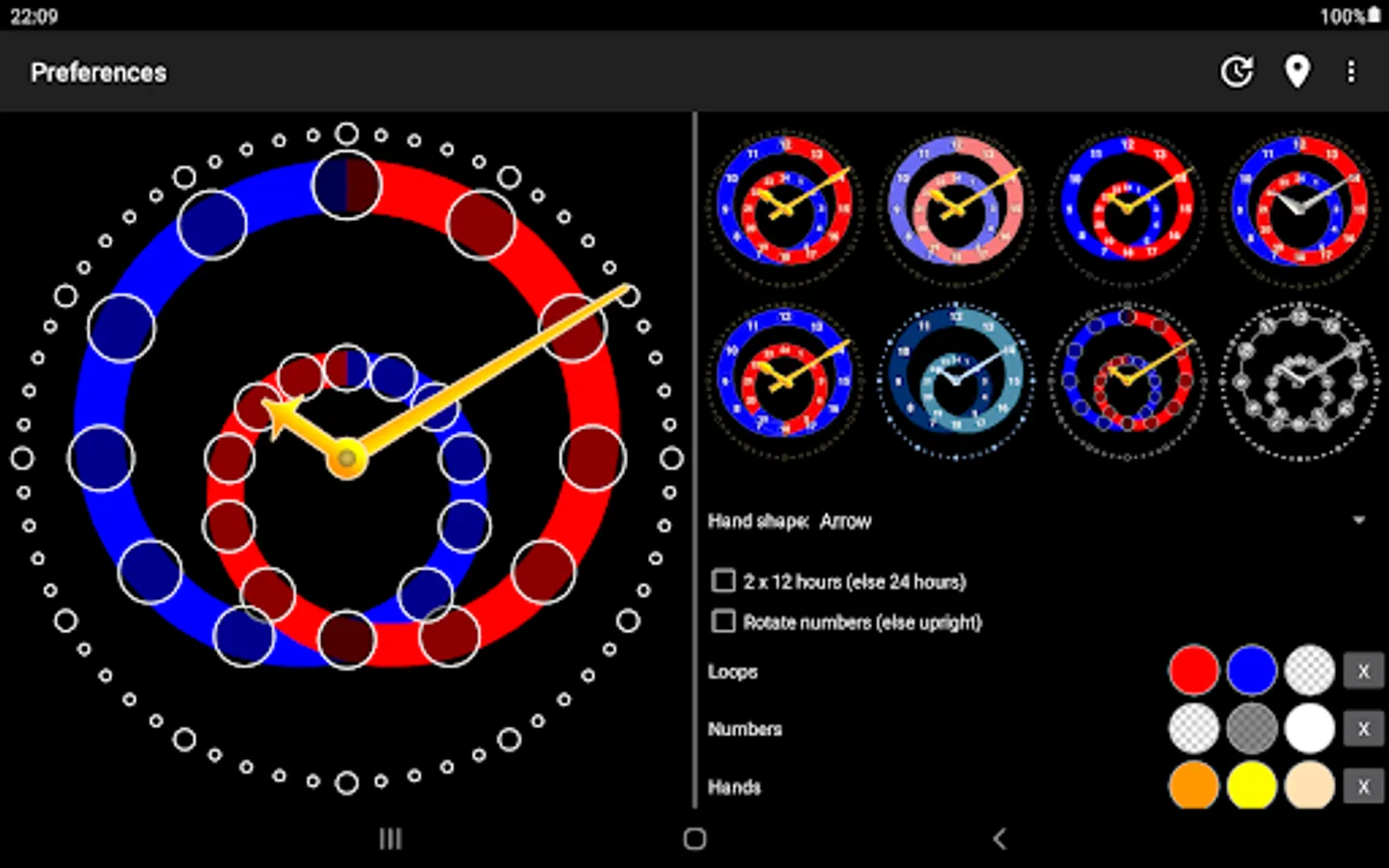 The dual loop clock can also display the day/night rhythm. The sunrise and sunset are calculated from your geo-position and displayed as a color distinction on the loops.