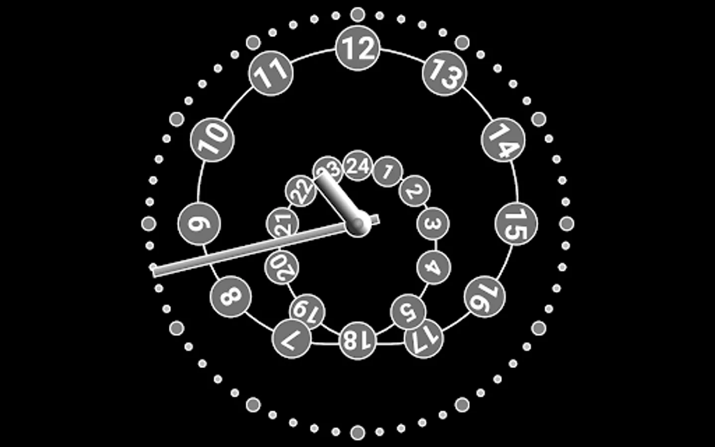 TwinClock clock visualizes this duality through a double loop, or Pascal's cochlea as mathematicians would call it.
