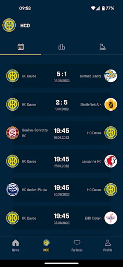 With the official Hockey Club Davos app, you'll always be up to date and won't miss any news or games, no matter where you are. If you can't be in the stadium, you'll know what's happening thanks to the live ticker.