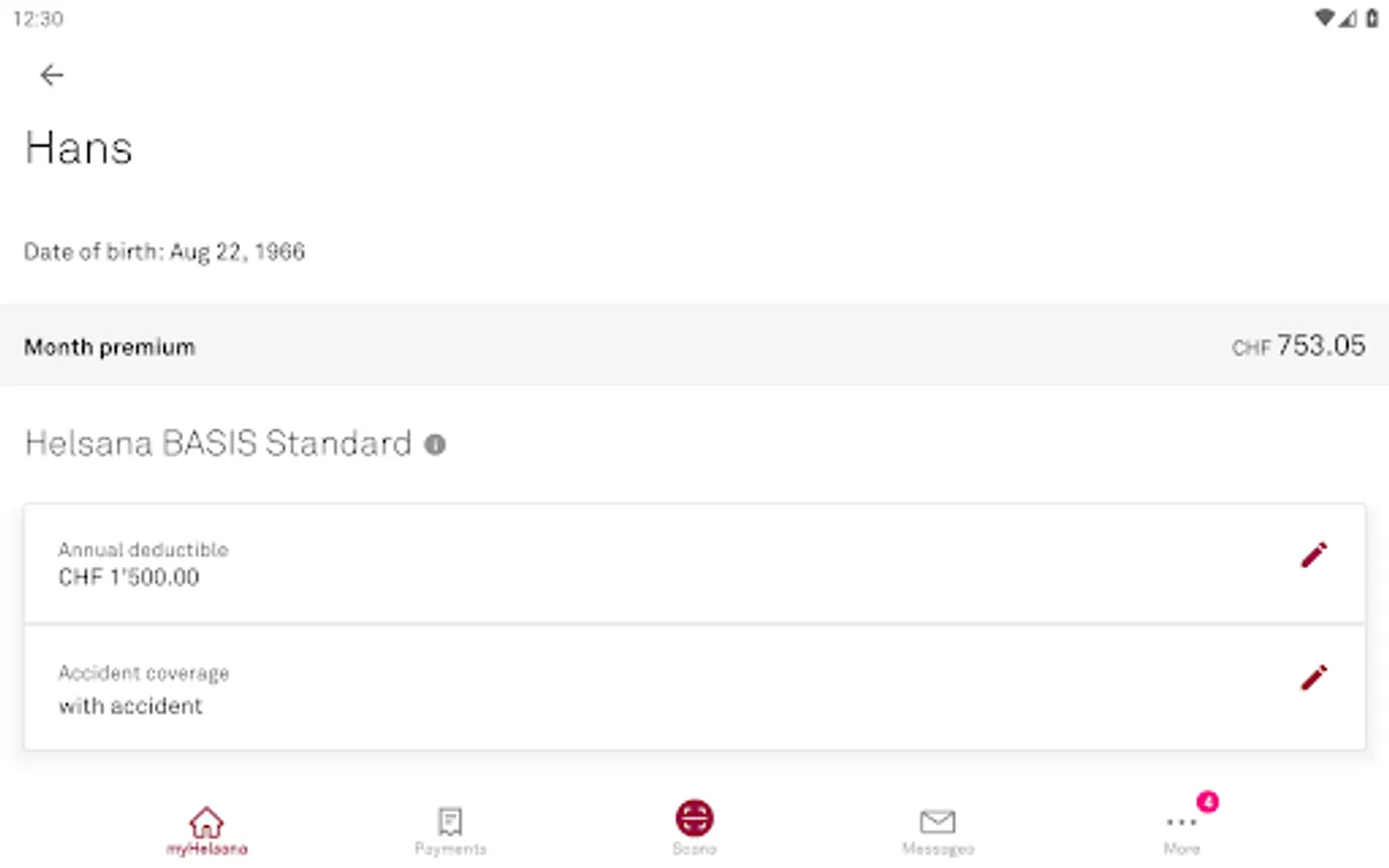 • Quickly done: Change your address, accident coverage or annual deductible yourself and manage your payment data instantly and easily.