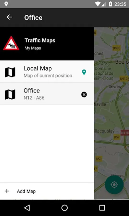 Traffic Maps allows you to store multiple maps and display them via the menu. The maps are always saved automatically. Traffic Maps even remembers the last displayed map and displays it immediately when you restart the app.