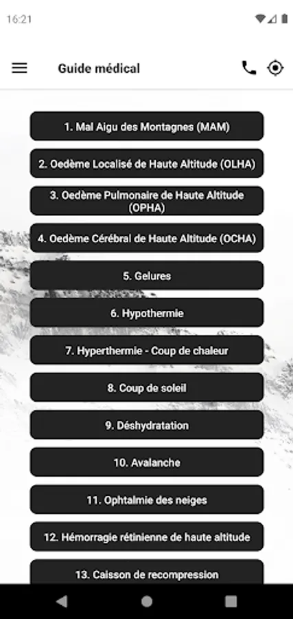 Diseases Information related to mountain activities, such as mountain sickness.
