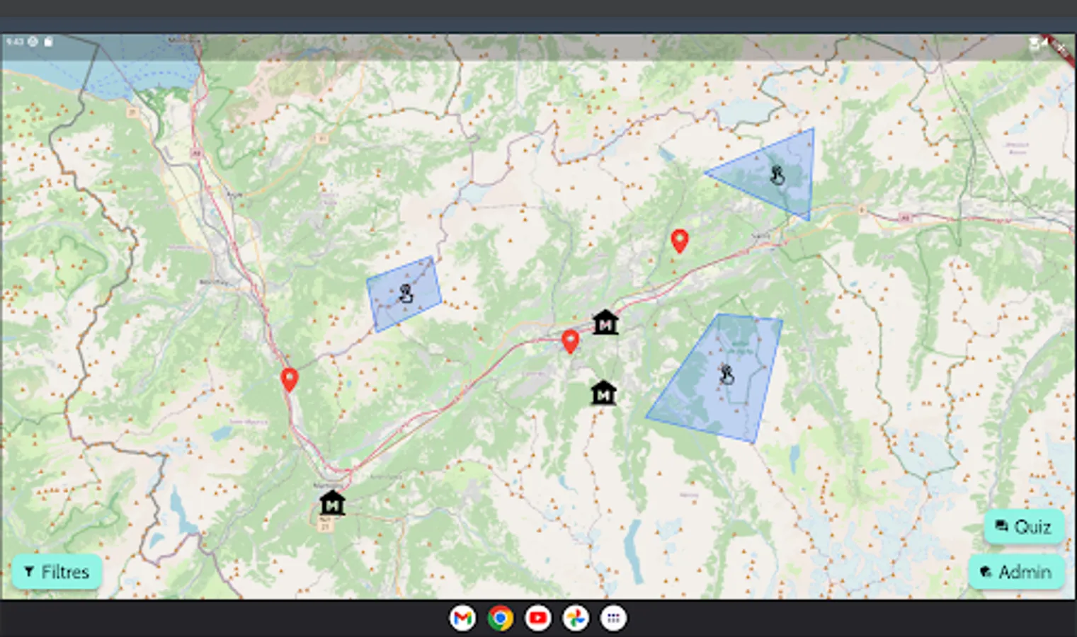 The Expo Nomade application allows its users to consult a geographical map containing various historical objects as well as their description. In addition, a quiz will be offered to its users to test their cultural knowledge.