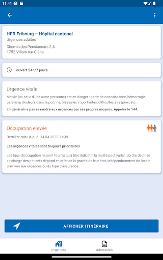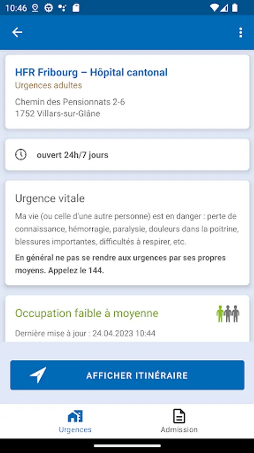 It allows you to choose the service closest to you in the event of an emergency – except for a life-threatening emergency –, to consult the occupancy rate in real time and to establish the shortest route to get there. 'after your location.