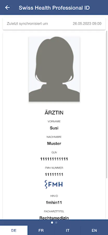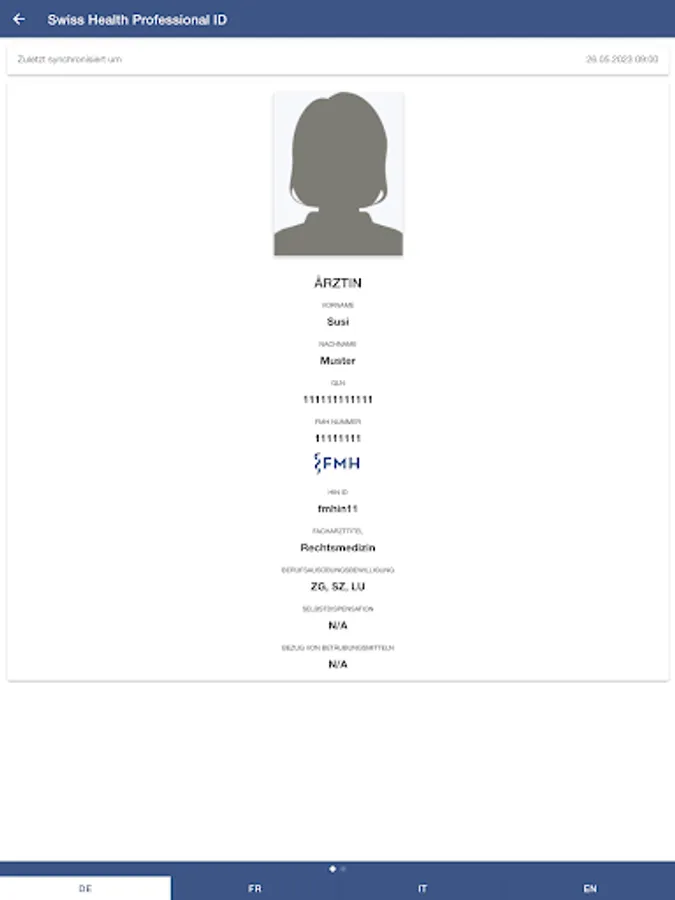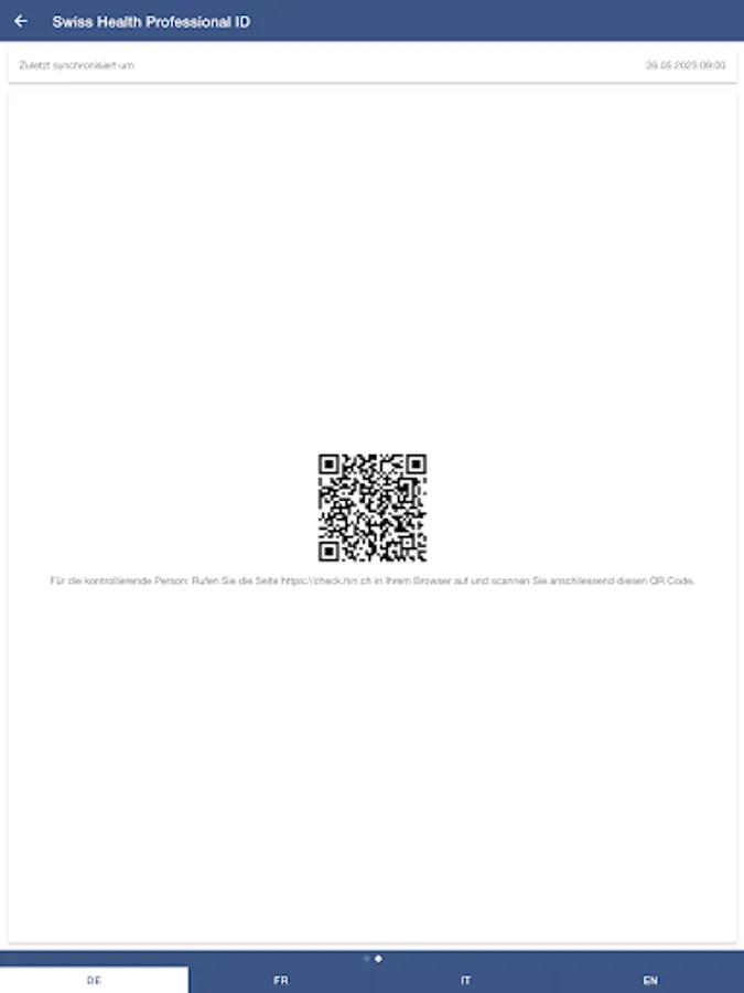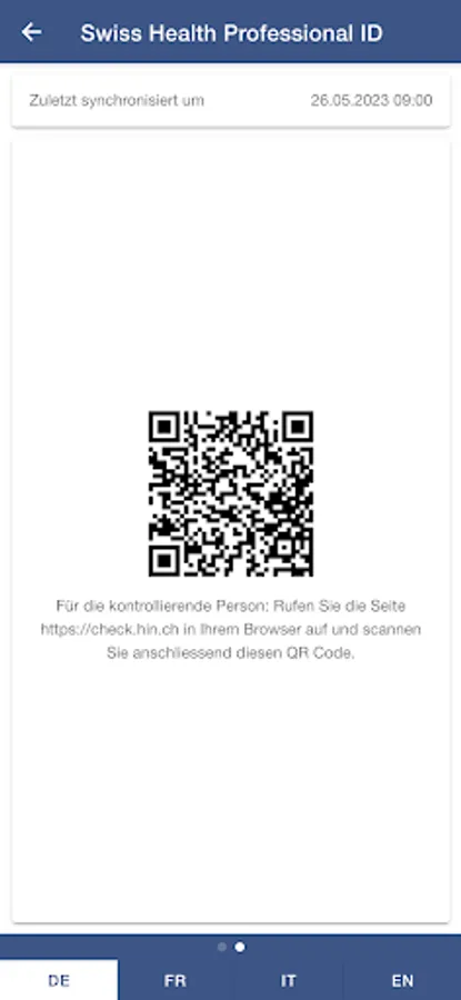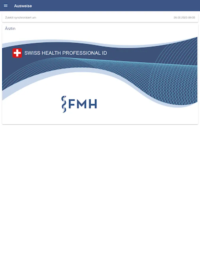 The myFMH app contains an electronic doctor's card, which displays information for identification and professional practice and can transmit this securely using a QR code. A prerequisite for using the app is a myFMH eID, which can be applied for on the member portal of the Association of Swiss Doctors (FMH).