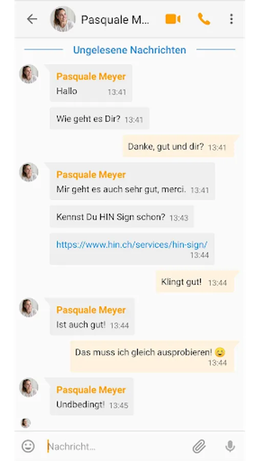 With HIN Talk you can easily and securely send messages to other HIN participants, exchange files and make (video) phone calls. HIN Talk is available to all HIN participants as a free service *.