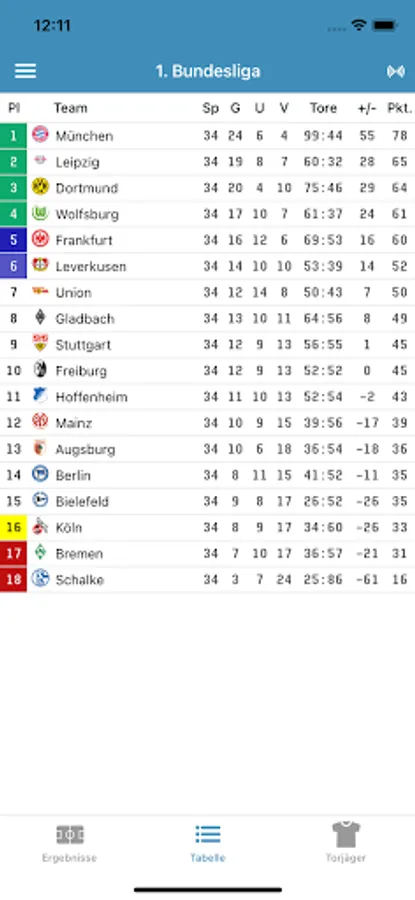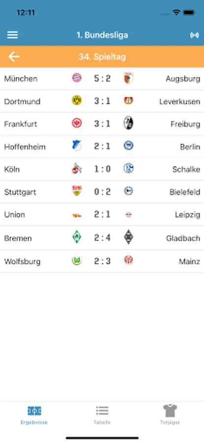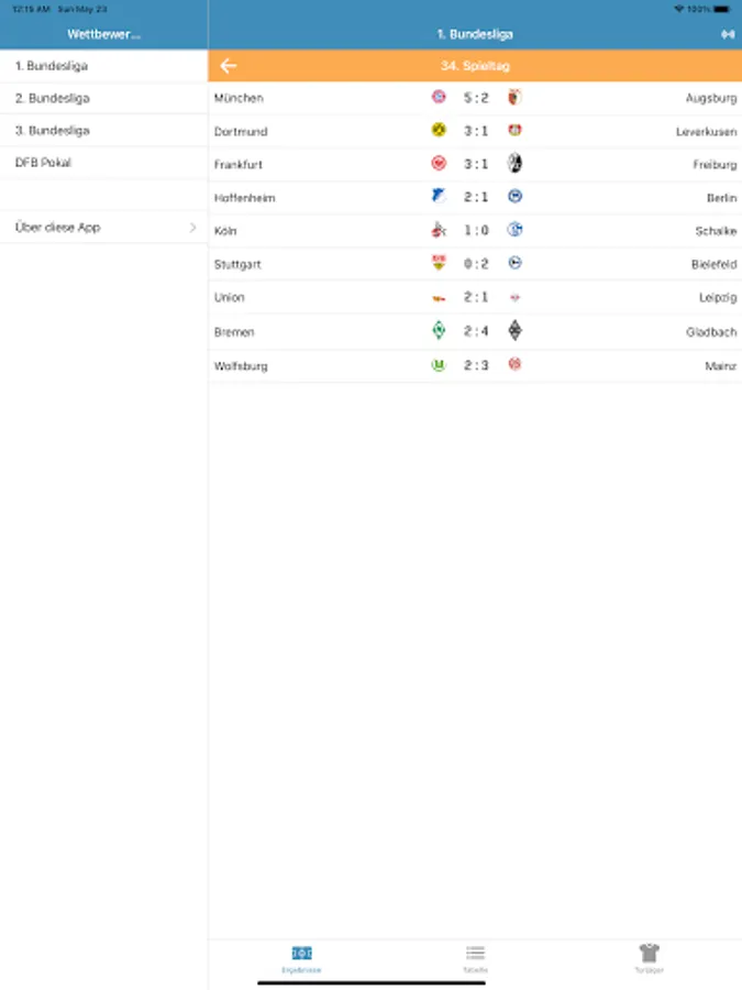Results, table standings and goal scorers based on the data of the OpenLigaDB.de community.