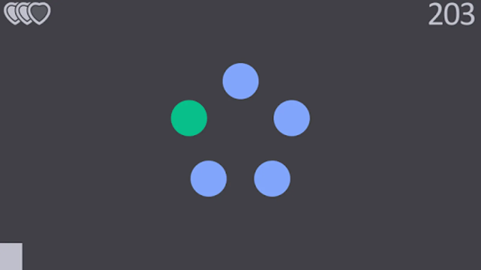 A mixture of patience and quick reaction is asked when the few gray dots on screen slowly turn colorful, one other than the rest - the one, you should tap before your time runs out.