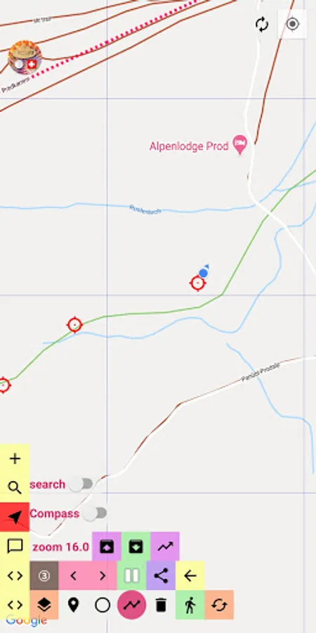 GroundOverlays (6×6 km) are downloaded (CH1903) if they are not yet available.