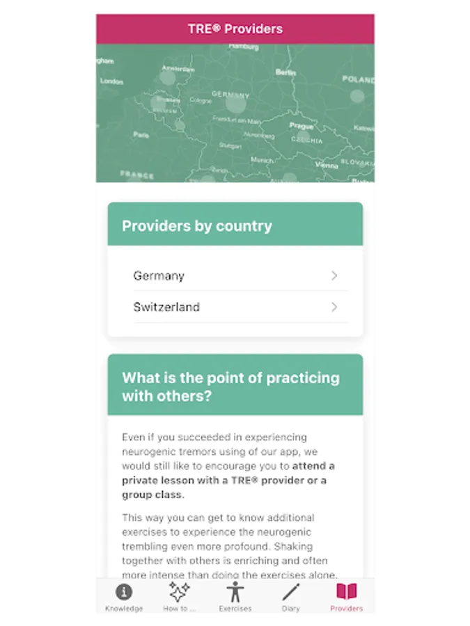 The app Shakeitoff with the TRE® exercises can help you resolve your traumata, overcome anxiety, compulsions and panic, and find calm, confidence and serenity serenity. This app helps you trigger neurogenic tremors, a self-healing reflex of our body, an innate ability to relieve tension and stress reactions.