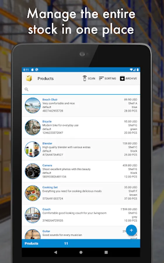 ✓ Integrated barcode scanner makes administrating products faster and more reliable