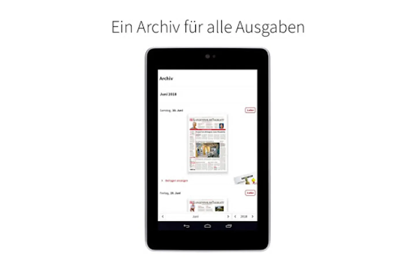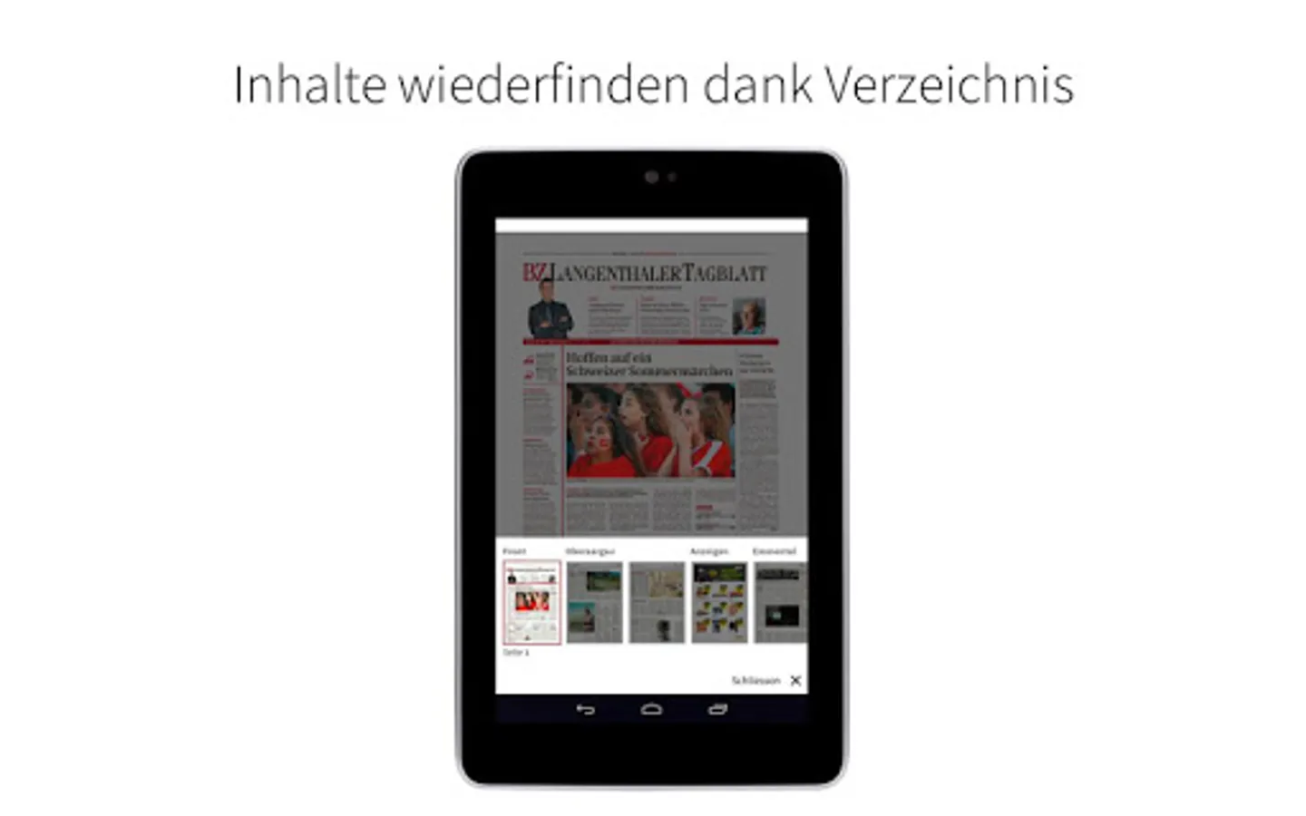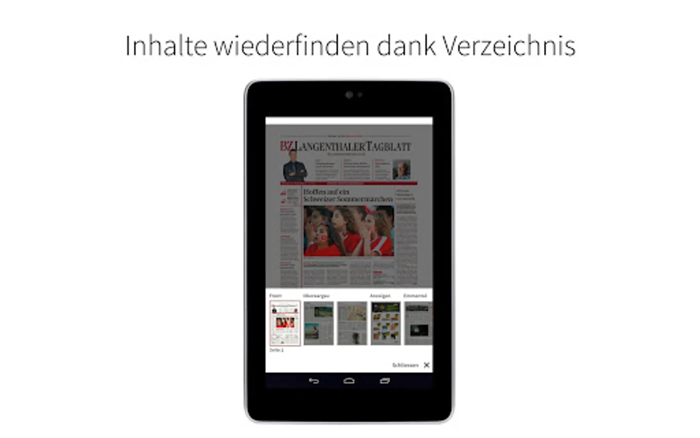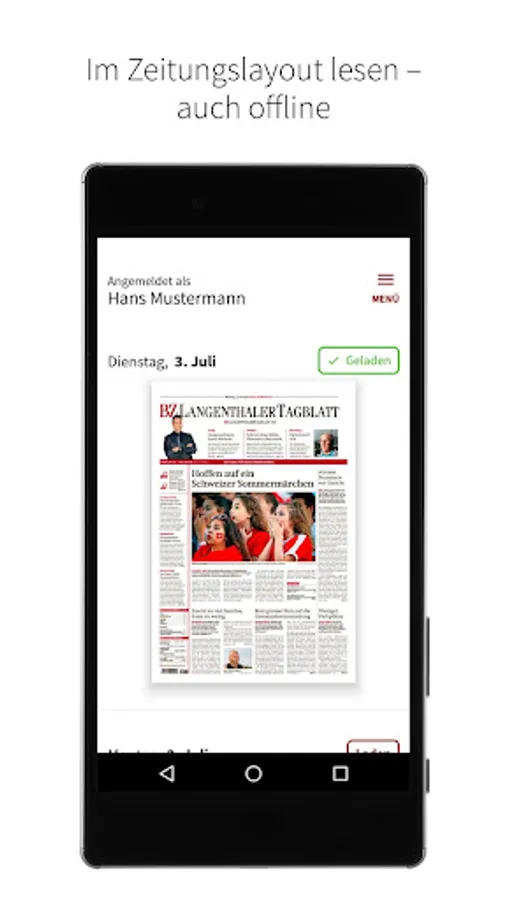 With the e-paper app you receive the Langenthaler Tagblatt as a digital edition. Read relevant news in the classic newspaper layout and enjoy intelligent entertainment as well as surprising topics from the fields of politics, business, culture, lifestyle and sport - regional, national and international.