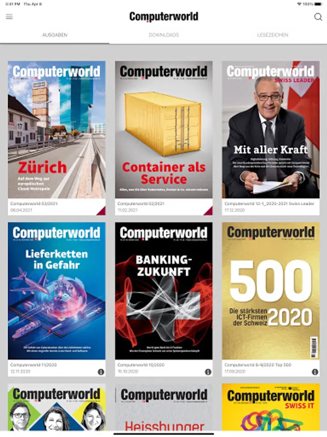 With the Computerworld app, you can conveniently access the magazine's e-paper in the original layout on your tablet. Once you have downloaded the current issue, you can read it without an active internet connection. The annual subscription includes nine magazines (including three double issues). The four special editions "Swiss IT", "New Working Environments", "Top 500" and "Swiss CIO" are part of the subscription.