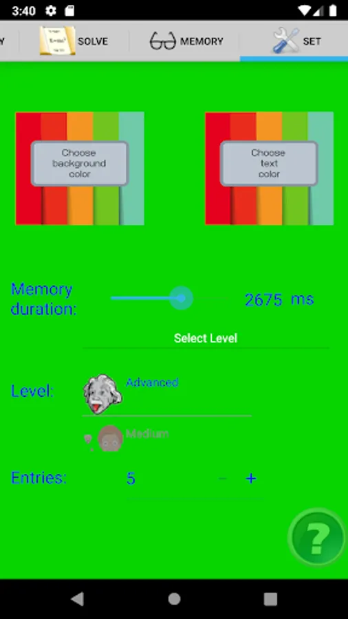 Additionally, the app remembers your best score and time for each mode, level, and for each number of entries.