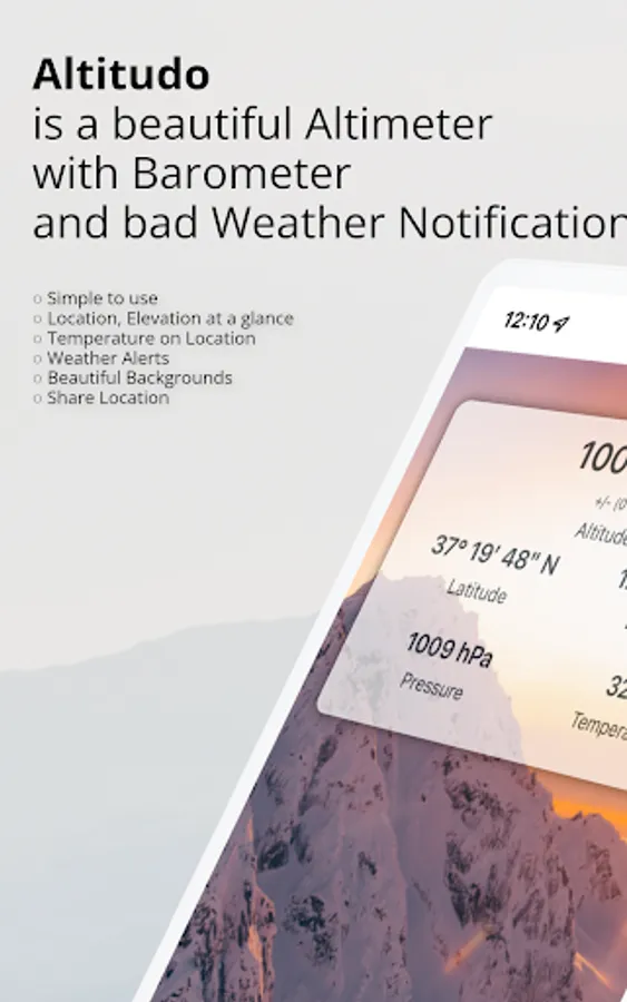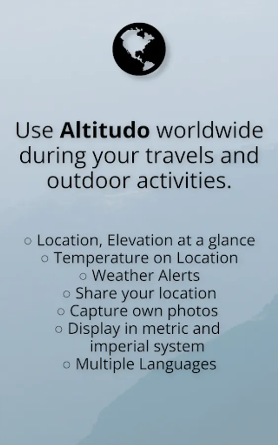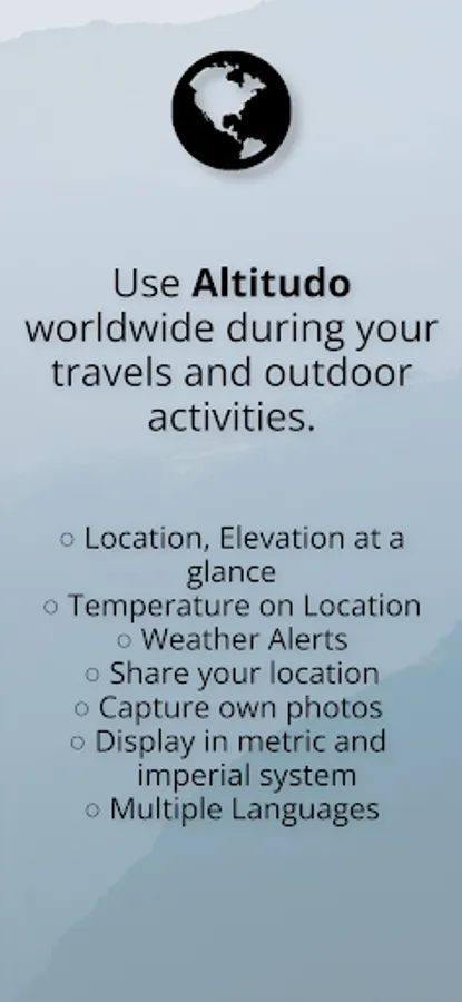 Altitudo's carefully selected features are combined with beautiful changing background images. Want even more variety in your images? Just take your own picture and add it to the app's wallpapers.