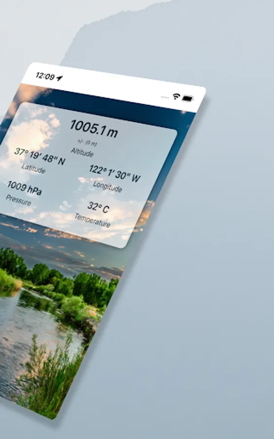 Altitudo displays your current position and altitude using GPS, barometric pressure using your phone's barometer sensor, and current temperature downloaded from the nearest weather station via the internet.