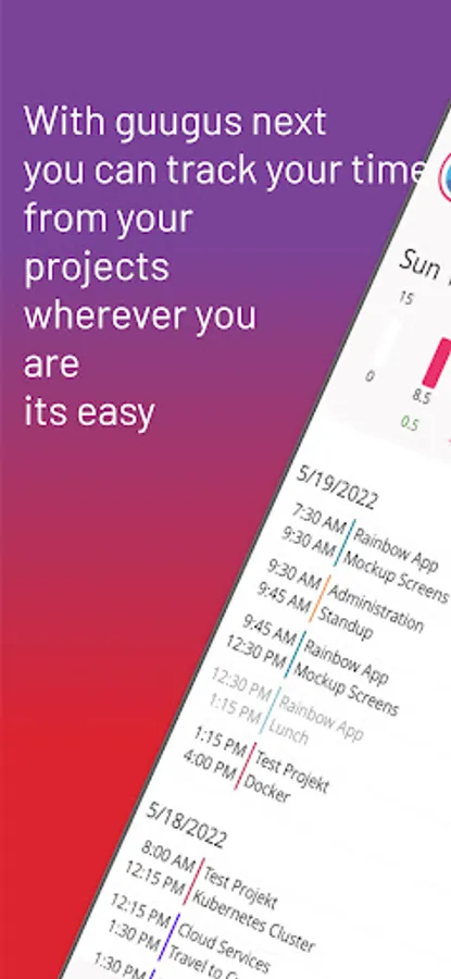 Then you should take a closer look at guguus next. guguus next is a simple time tracking app that allows you to quickly track your time based on project and category.