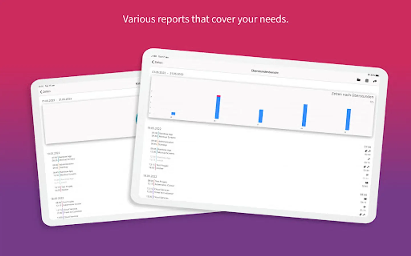 You work in a small SME or in a team and want to have an overview of what time your employees have booked on your customer orders, no problem - guguus next offers you detailed reports and statistics about the booked times.