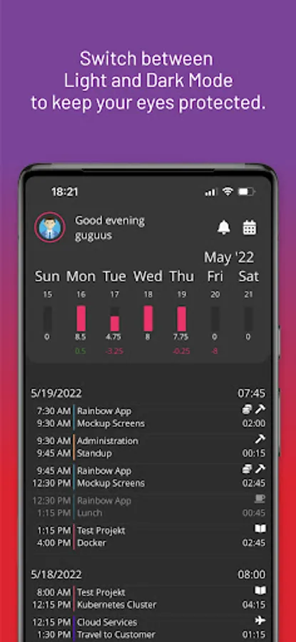 We all know that we forget to record our times, with the help of guguus next this will not happen to you in the future, because guguus next will remind you if you have not recorded your time for a while. In addition, guguus next offers you the possibility to store your work locations, whenever you arrive at your workplace, guguus next automatically starts recording your working time, when you leave the workplace again, guguus next stops the recording for you.