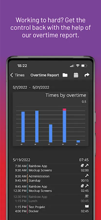 You work a lot and want to keep track of your overtime, then you should take a closer look at the overtime report of guguus next. This report gives you a daily breakdown of your overtime hours.