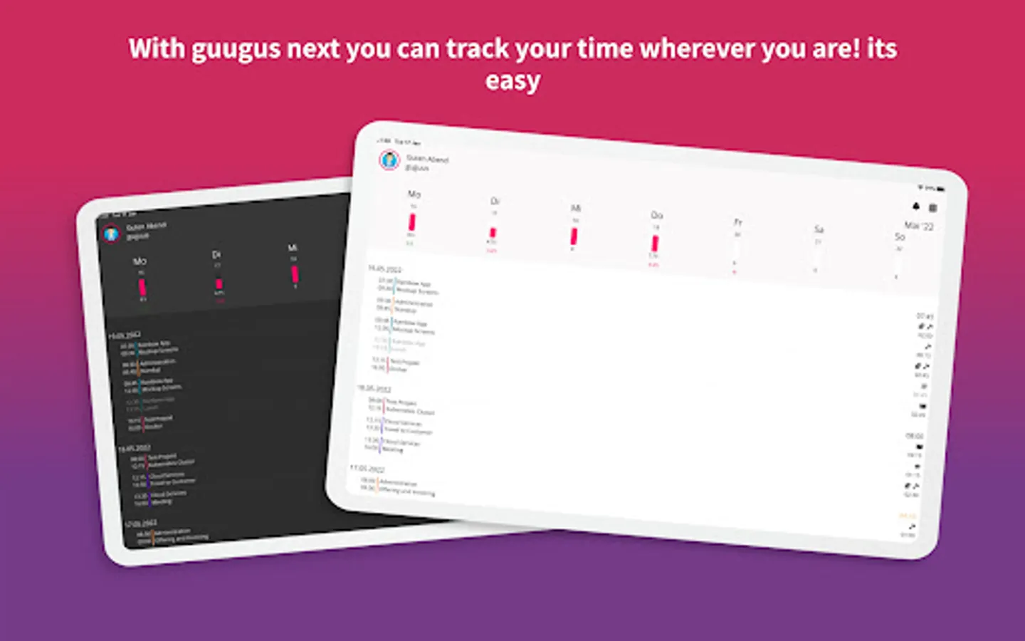 Time sheets, time tracking, time reports, whatever you call it, time tracking is easy, fast and accurate with guguus next and will be no problem for you in the future.