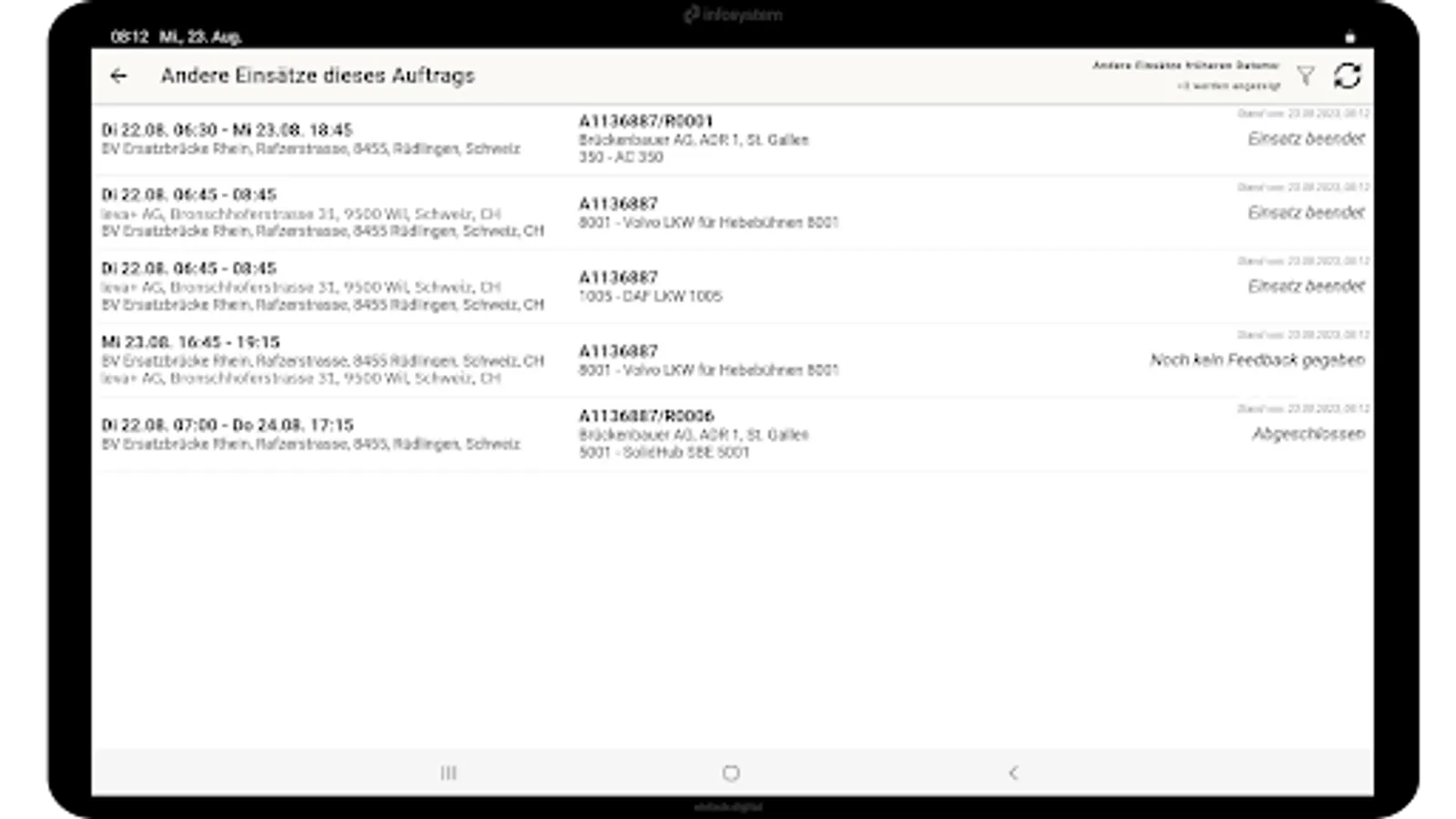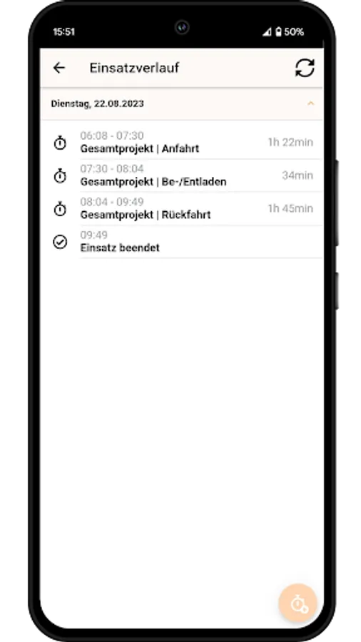 The mission details are synchronized periodically. This ensures that even short-term changes to the assignment reach the driver.