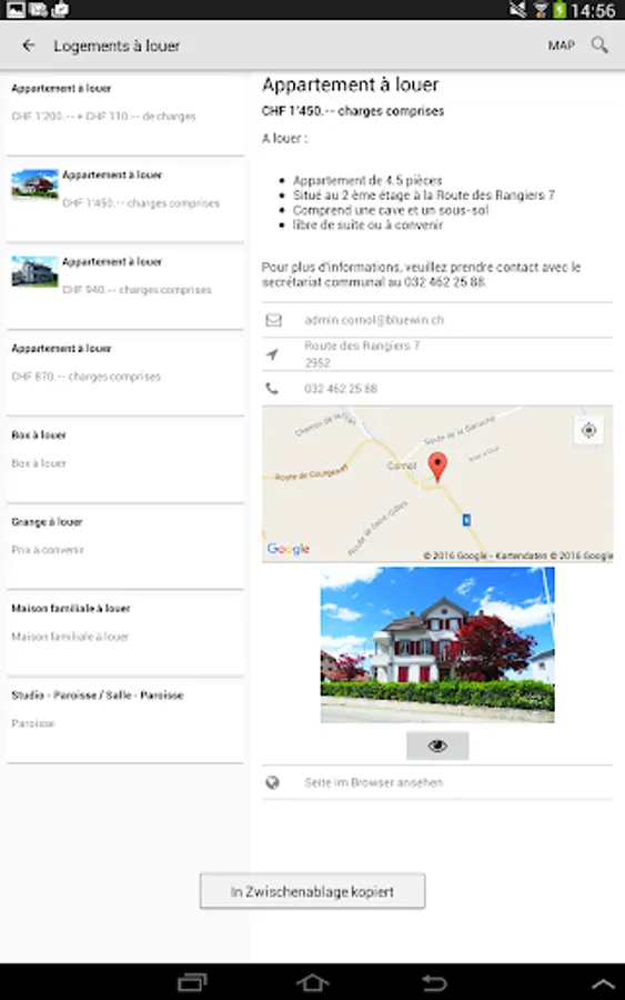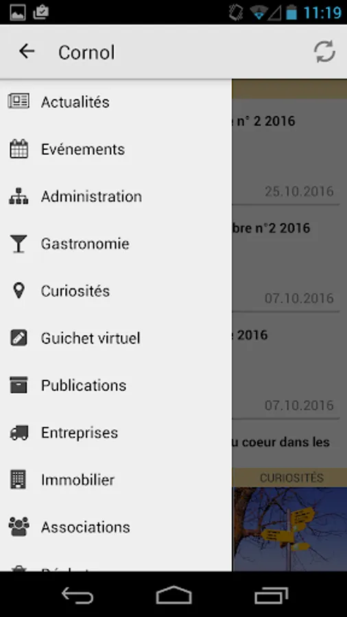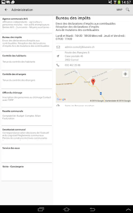 Everything about the town of Cornol: calendar, curiosities restaurants, hotels, associations, companies, administration, waste collection policy. integrated map feature, the distance display and the route. Functions and calls for integrated email, updated content automatically. Also works if offline. virtual counter and central account user.