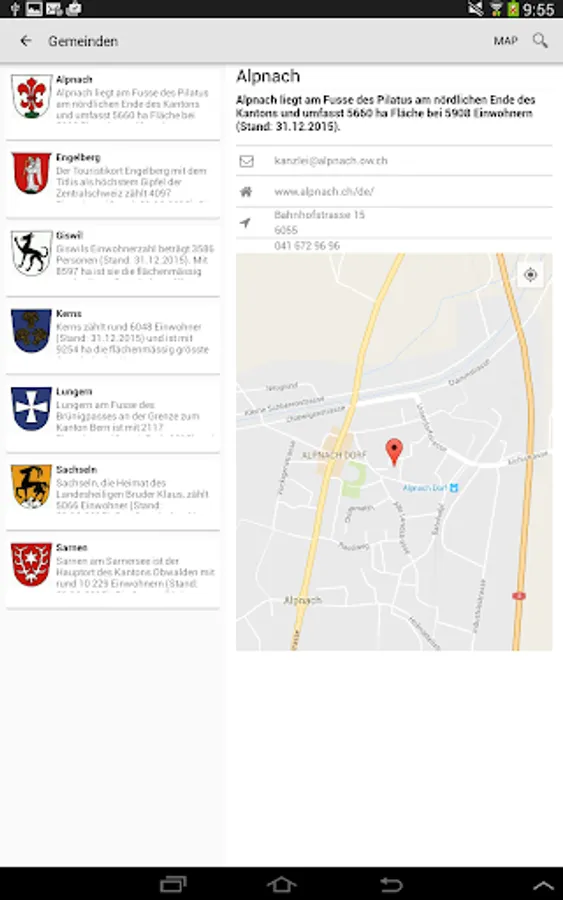 Every worth knowing Canton Obwalden: News, agenda, publications, administration and politics. With integrated maps feature, integrated call and e-mail function and automatically updated content of www.ow.ch. Also offline runs. At times online integrated eGovCenter with online switch and central account.