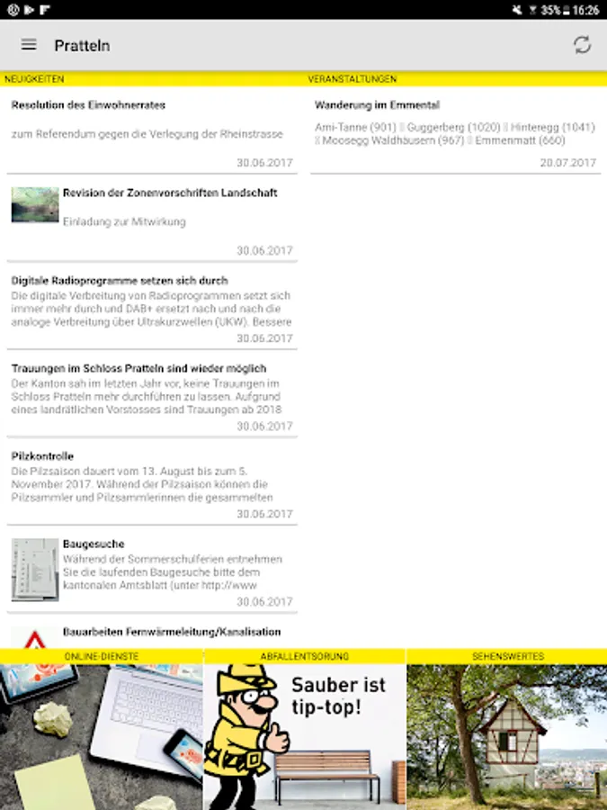 Pratteln has many sides. Discover these and you will find all information about our congregation. For residents and businesses moving here. With news and events, current projects and publications. eGovCenter with online switch, GA reservation system and central user account.